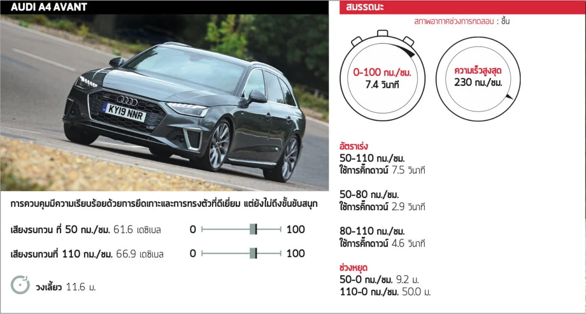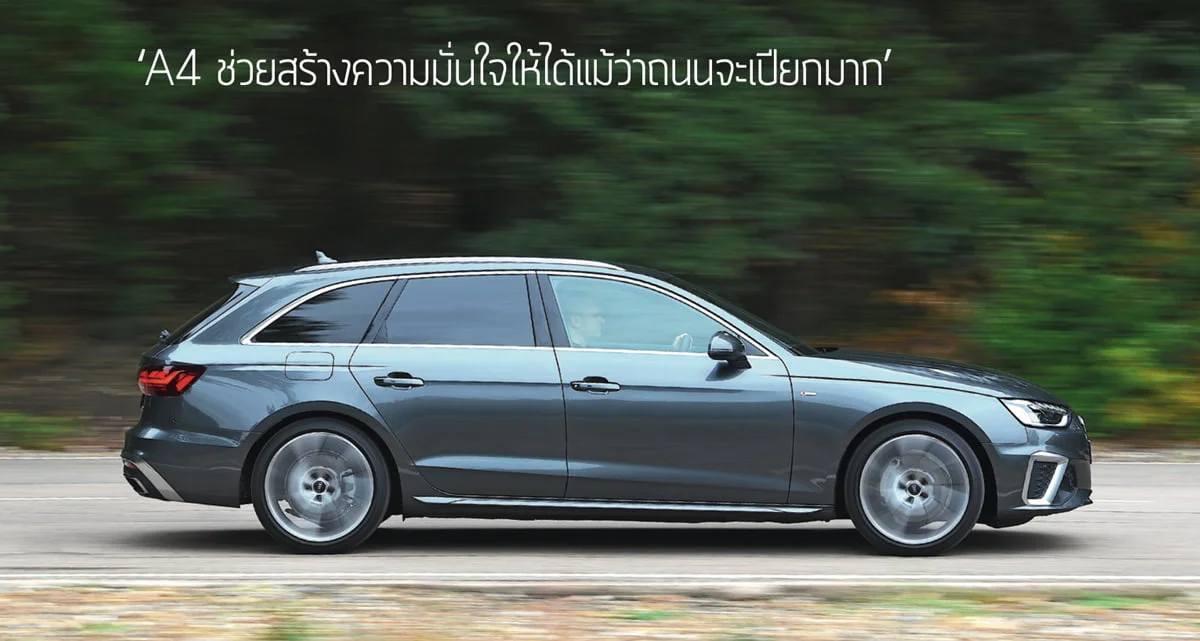 รถแต่ละคันมีลักษณะนิสัยต่างกัน A4 อาจไม่ใช่รถที่น่าตื่นเต้นบนถนนสายรองที่เต็มไปด้วยหินขรุขระแต่มันช่วยสร้างความมั่นใจแม้ว่าถนนจะเปียกมาก ระดับการยึดเกาะสูงมาก ล้อหน้าและหลังยึดเกาะได้อย่างสมดุล และยังมีอาการโยนตัวเพียงเล็กน้อย พวงมาลัยนั้นเร็วพอที่จะทำให้รถดูคล่องตัวแต่ว่าคุณจะไม่ค่อยมีส่วนร่วมมากนัก