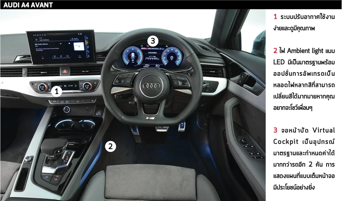 หากคุณกำลังมองหาการตกแต่งภายในที่หรูหราที่สุด เราขอแนะนำ A4 มันให้ความรู้สึกที่เหลือเชื่อและโดดเด่นด้วยพลาสติกบุนุ่มขนาดใหญ่ที่สุด รวมถึงการตกแต่งที่น่าดึงดูดใจ ในขณะที่สวิตช์, ปุ่ม, และแป้นควบคุมแบบหมุนทุกอันทำงานได้อย่างแม่นยำ