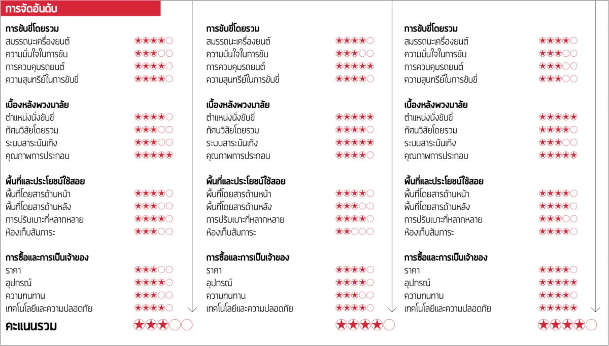 พื้นที่ด้านหน้า, พื้นที่ด้านหลัง, ความยืดหยุ่นในการปรับเบาะ, ห้องเก็บสัมภาระ