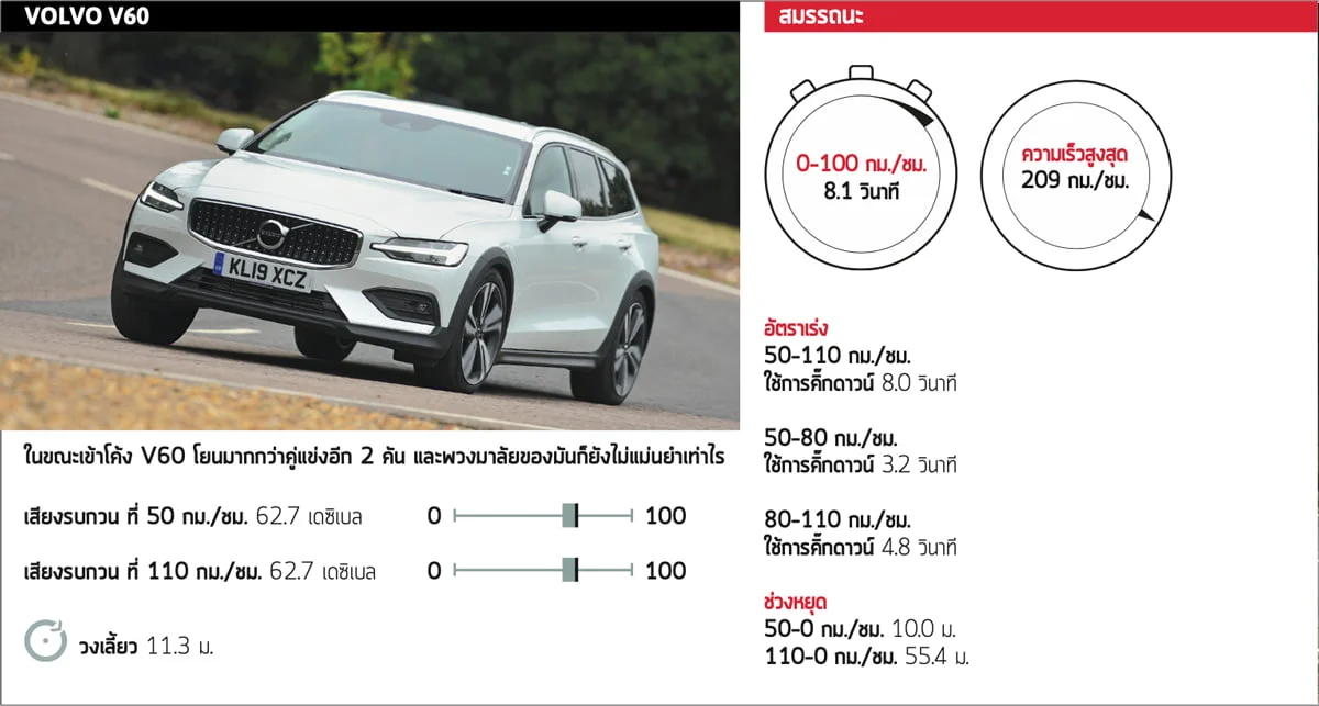 V60 สามารถจุสิ่งของได้มากที่สุด, มีตำแหน่งการขับที่ยอดเยี่ยม มีอุปกรณ์ครบครัน แม้การขับของรุ่น Cross Country จะไม่มั่นคงนักแต่มันก็ยังเป็นเอสเตทที่ยอดเยี่ยม อย่างไรก็ตามเราอาจจะประหยัดเงินและหันไปหารุ่นทั่วไปที่สะดวกกว่าและควบคุมได้ดีกว่าแทน